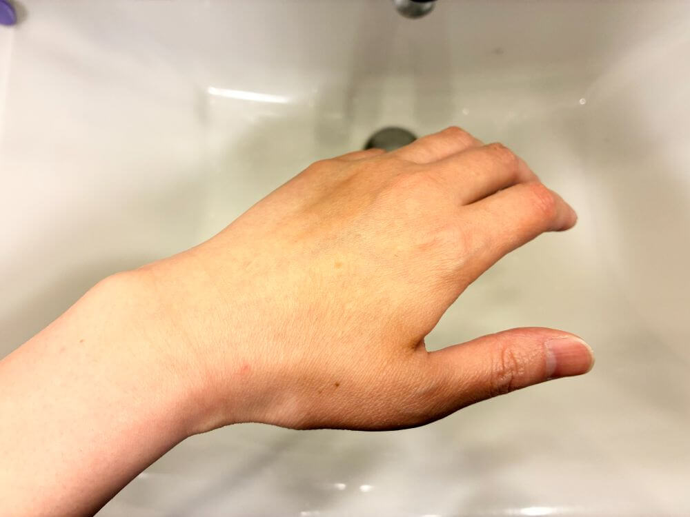 塗った後、親指の付け根あたりのガサガサがきめ細かくなりました